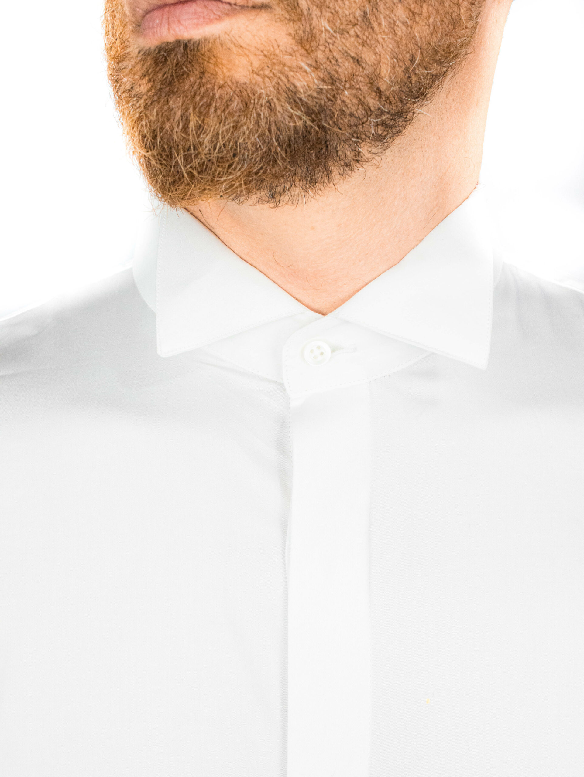 Col : le col de la chemise doit s’accorder avec le type de cravate choisie et avec le costume. Par exemple, un col italien ou un col à pointes boutonnées sont plus formels, tandis qu’un col ouvert est plus décontracté.